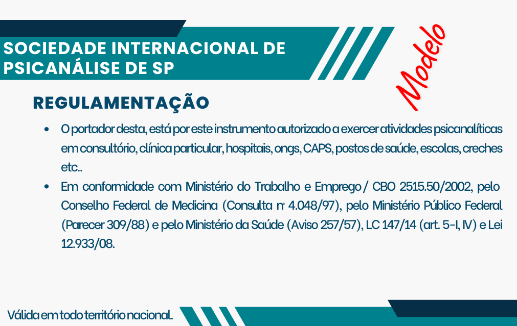Filiação de psicanalista à Sociedade Internacional de Psicanálise de São Paulo – SIP/SP